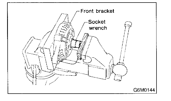 2. Closely install a fit tool on the bearing inner race. Press the bearing down out of front bracket with a hand press or vise. A socket wrench can serve as the tool.