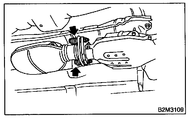 5. Tighten bolt which holds center exhaust pipe to hanger bracket.