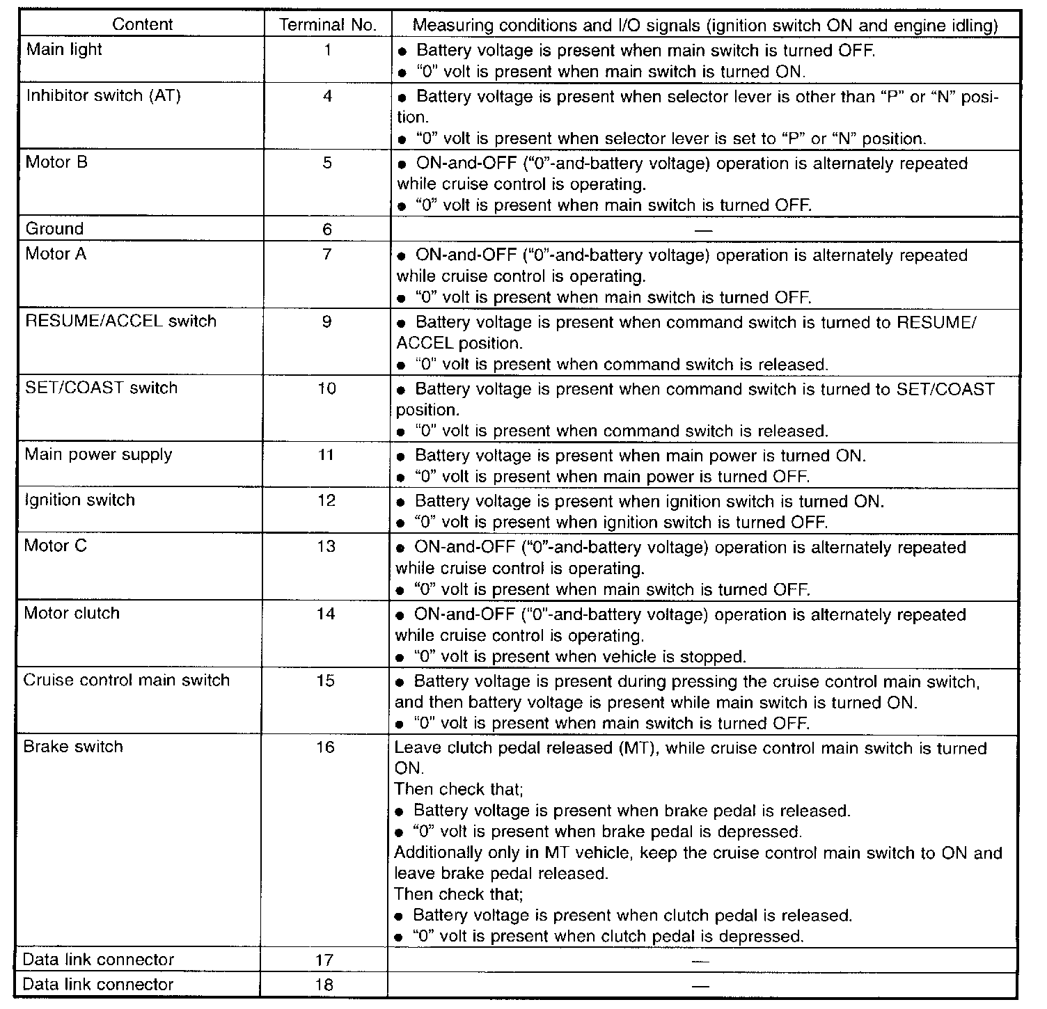 Control Module I/O Signal - Connector Pin-Outs[1 -18]: