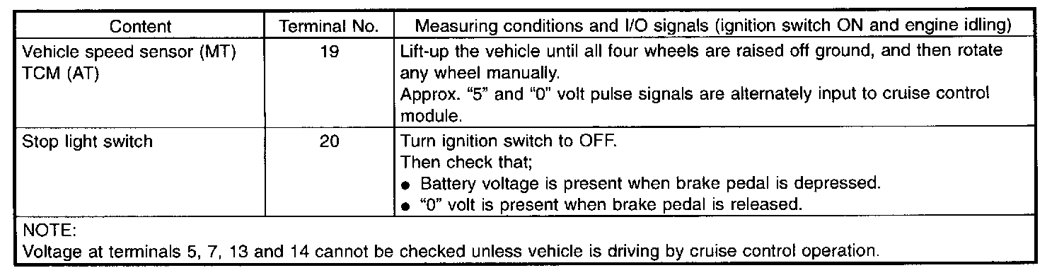 Control Module I/O Signal - Connector Pin-Outs[19 - 20]: