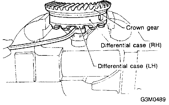 2. Secure the case in a vise and remove the crown gear tightening bolts, then separate the crown gear, case (Right-Hand) and case (Left-Hand).