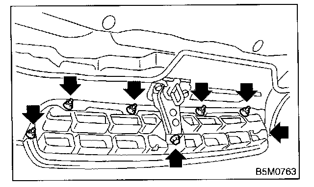Remove six nuts and one bolt then detach front grill.