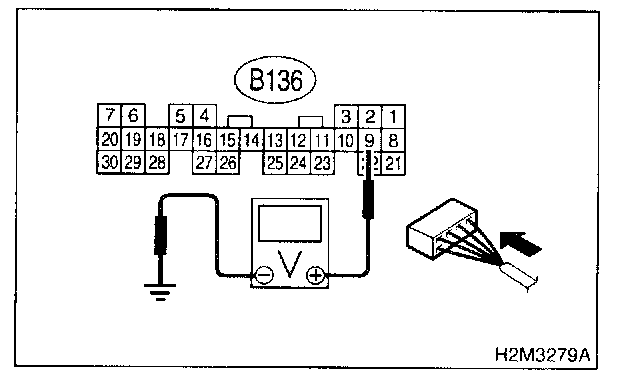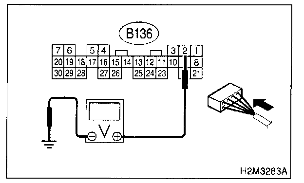 3. Measure voltage between ECM connector and chassis ground.