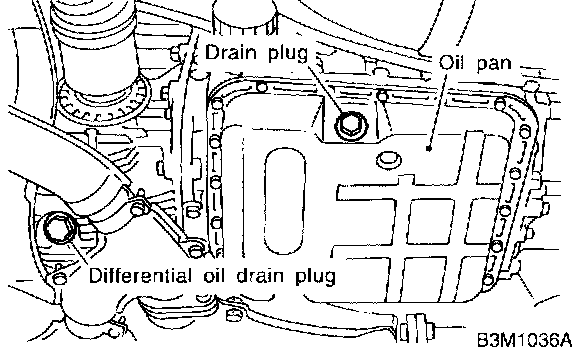 NOTE: Tighten ATF drain plug after draining ATF.