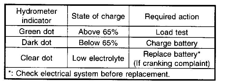 4. CHECK HYDROMETER FOR STATE OF CHARGE