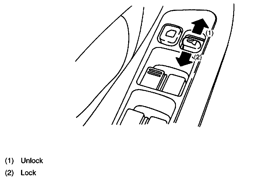 The power door lock system consists of driver's and front passenger's door lock switches, front door lock actuators, rear door lock actuators, and rear gate lock actuator.