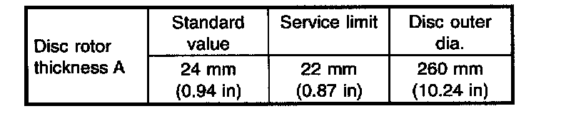 - A wear indicator is provided on the inner disc brake pad. If the pad wears down to such an extent that the end of the wear indicator contacts the disc rotor, a squeaking sound is produced as the wheel rotates. If this sound is heard, replace the pad.