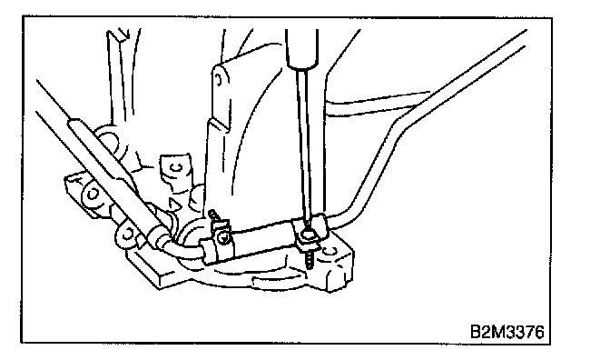 25. Loosen clamp which holds front left side fuel hose to injector pipe and remove the pipe from clamp.