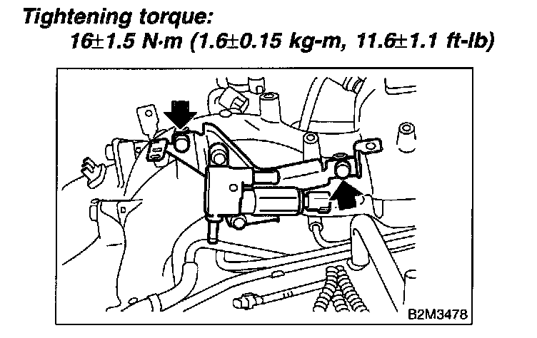 2. Tighten bolt which installs fuel pipes on intake manifold.