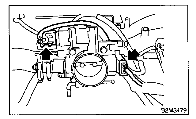 6. Disconnect connectors from throttle position sensor and idle air control solenoid valve.