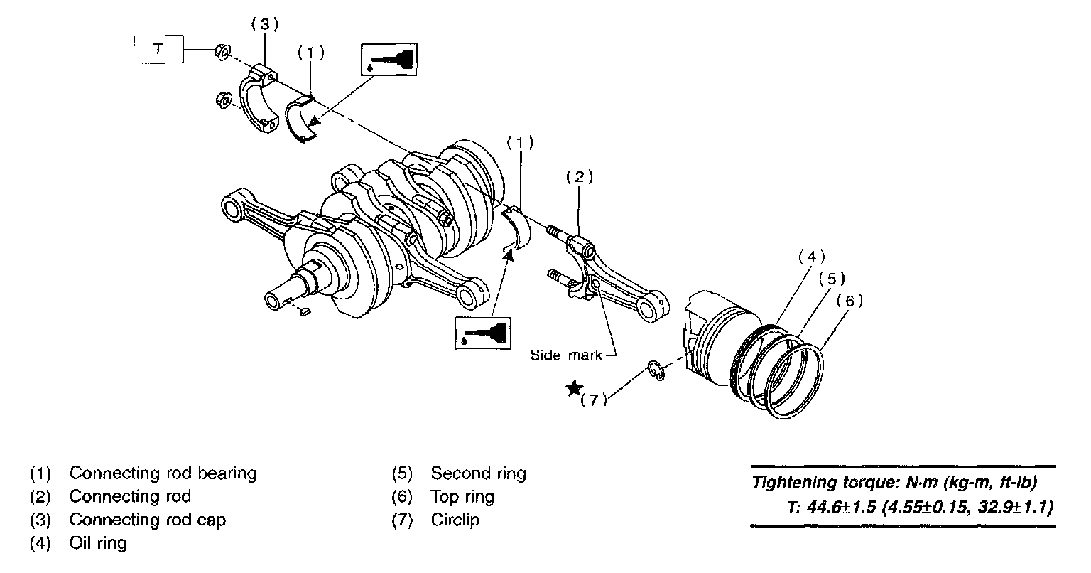 Tightening torque: 47 ±3 Nm (4.8 ±0.3 kg-m, 34.7 ±2.2 ft. lbs.)