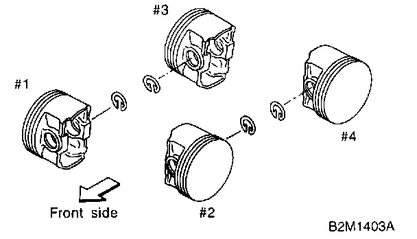 CAUTION: Piston front mark (A) faces towards the front of the engine.