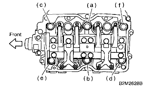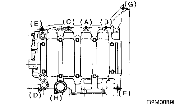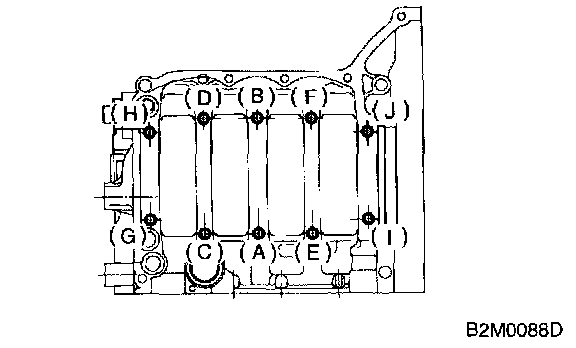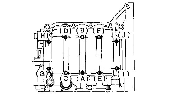 5. Tighten 10 mm cylinder block connecting bolts in alphabetical sequence.