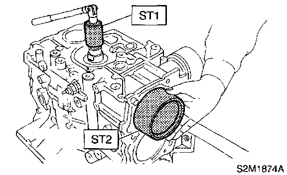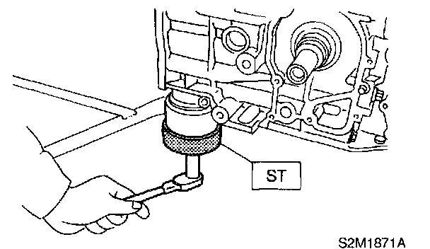 1. Install ST to cylinder block, then install crank- shaft bearings.
