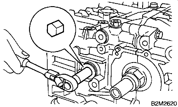 ^ Align flat surface of oil pump's inner rotor with crankshaft before installation.
