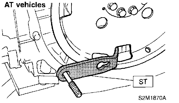 b. Using ST1, turn crankshaft so that #1 and #2 connecting rods are set at bottom dead center.