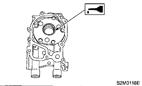 d. Install oil pump on cylinder block. Be careful not to damage oil seal during installation.