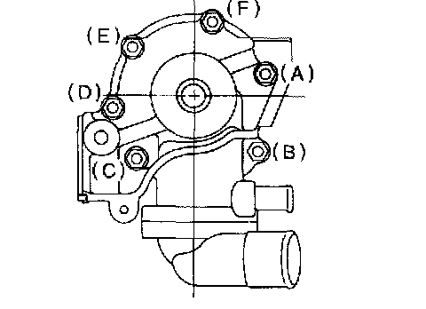 ^ When installing water pump, tighten bolts in two stages in alphabetical sequence as shown in figure.