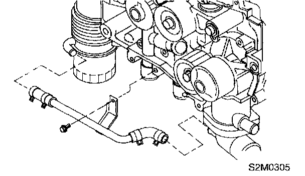 14. Install water by-pass pipe between oil cooler and water Pump (AT vehicles only).
