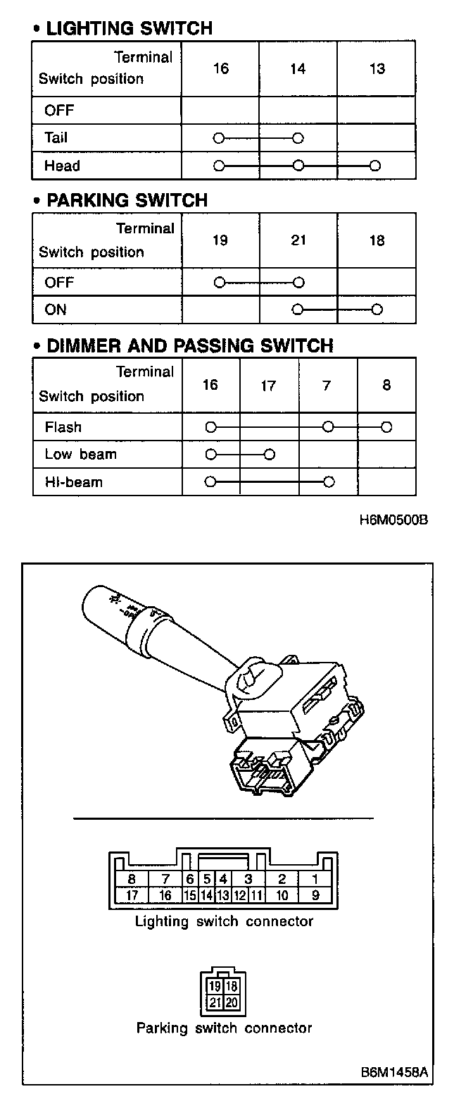 Move combination switch to respective positions and check continuity between terminals.