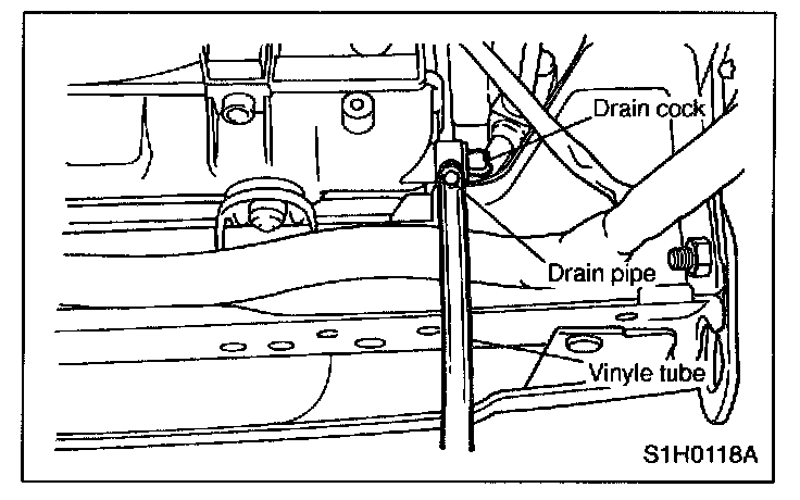 8. Tighten radiator drain plug securely after draining coolant. (Drain tube may face downward.)
