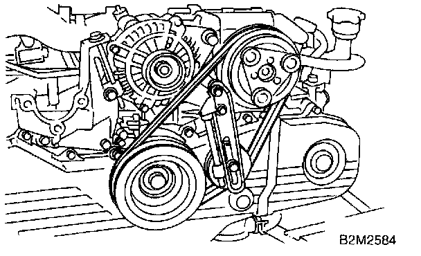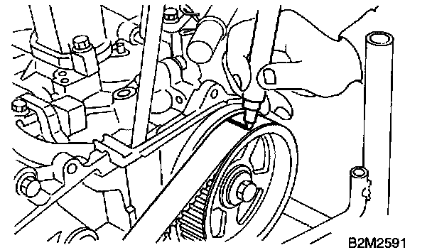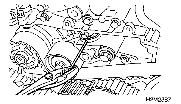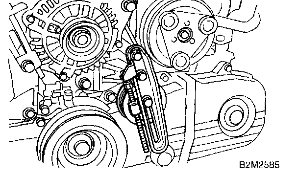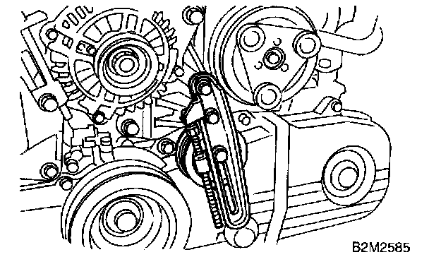 CAUTION: After properly installing timing belt, remove rocker cover and ensure that the valve lash adjuster contains no air.