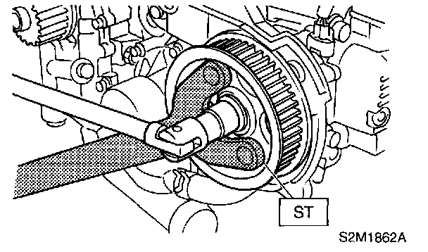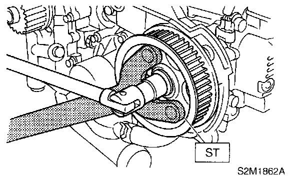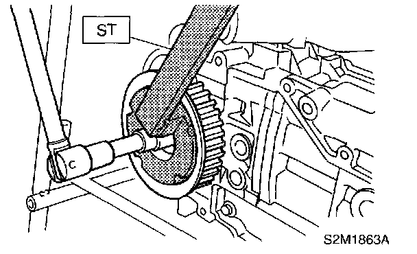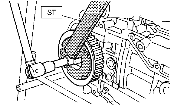 2. Remove camshaft sprocket No. 2. To lock camshaft, use ST.