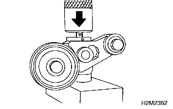 3. If the adjuster rod is not stiff and moves down, replace the automatic belt tension adjuster assembly with a new one.
