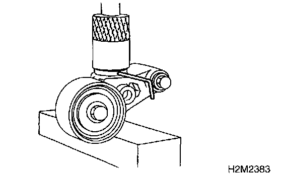 1. Check mating surfaces of timing belt and contact point of adjuster rod for abnormal wear or scratches. Replace automatic belt tension adjuster assembly if faulty.