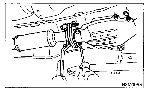 - After removing center exhaust pipe, do not apply excessive pulling force on rear exhaust pipe.