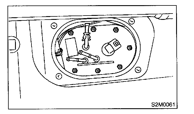 9. Remove nuts which install fuel pump assembly onto fuel tank.