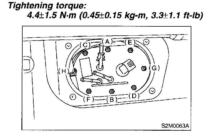 CAUTION: Leave fuel filler cap open when tightening nuts, to prevent fuel from flowing out through fuel delivery and return pipes. Close fuel filler cap after tightening nuts.