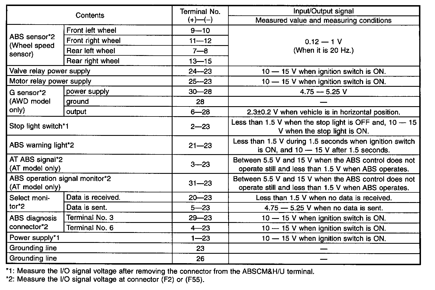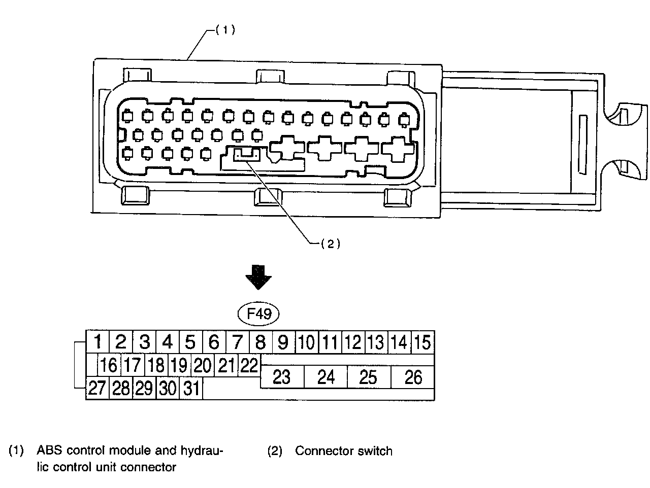 - When the connector is removed from the ABSCM & H/U, the connector switch closes the circuit between terminal No. 21 and No. 23. The ABS warning light illuminates.