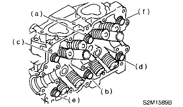 5. Tighten bolts (c), (d), (e) and (f) to 15 Nm (1.5 kg-m, 11 ft. lbs.).