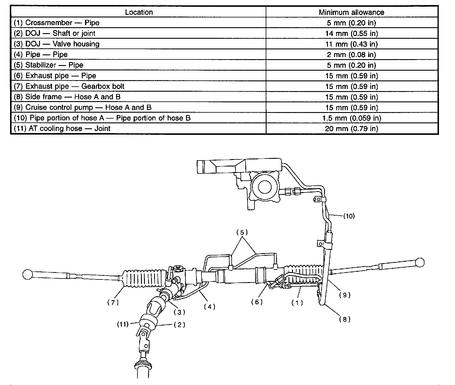 This table lists various clearances that must be correctly adjusted to ensure normal vehicle driving without interfering noise, or any other faults.