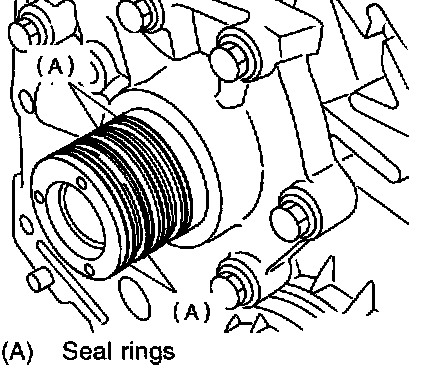 ^ Install the oil seal retainer and seal rings. After adjusting the drive pinion backlash and tooth contact.