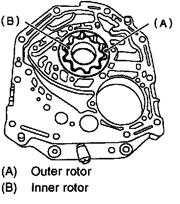 ^ After assembling, turn the oil pump shaft to check for smooth rotation of the rotor.
