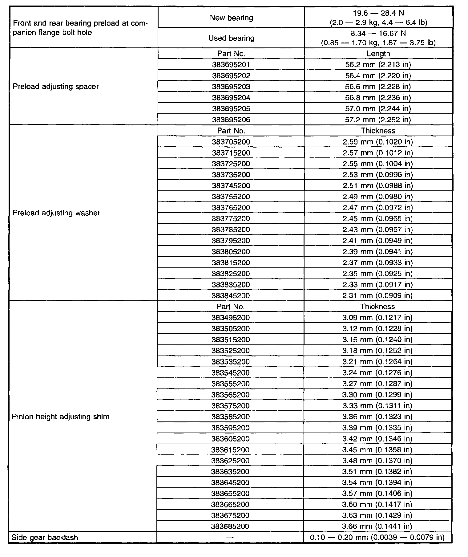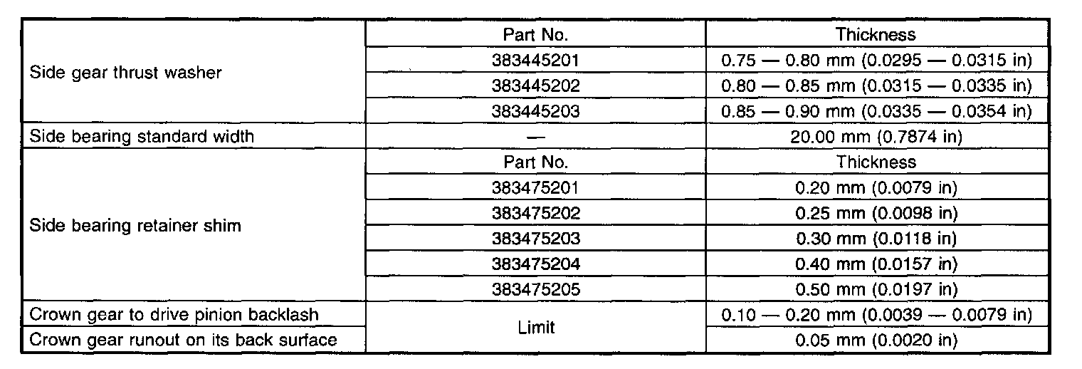When replacing a rear differential assembly, select the correct one according to the provided table.