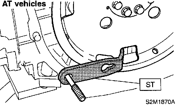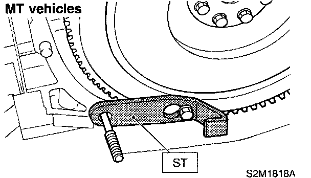 11. Remove flywheel (MT vehicles only) or drive plate (AT vehicles only).