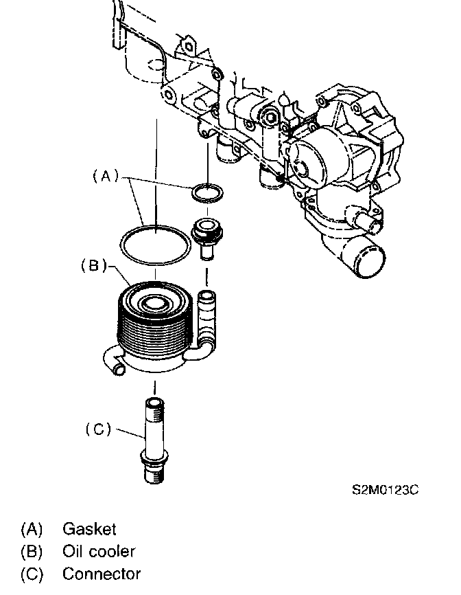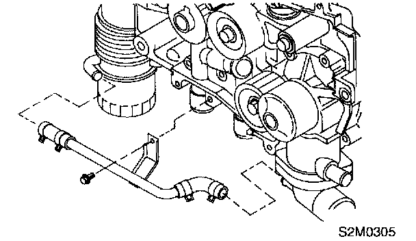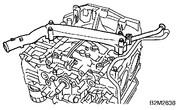 14. Remove water by-pass pipe between oil cooler and water pump (AT vehicles only).
