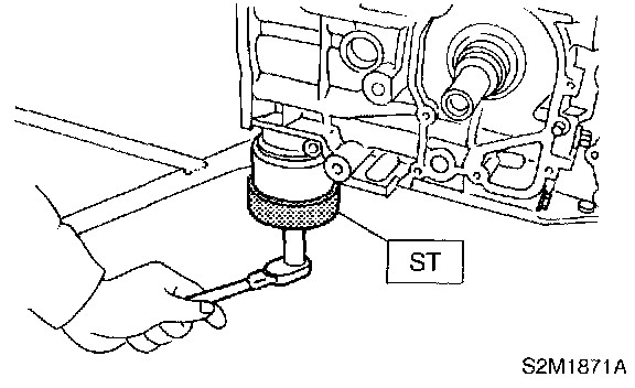 b. Press bushing with ST after applying oil on the periphery of bushing.