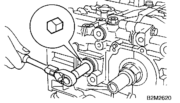 5. Remove bolts which connect cylinder block on the side of #2 and #4 cylinders.