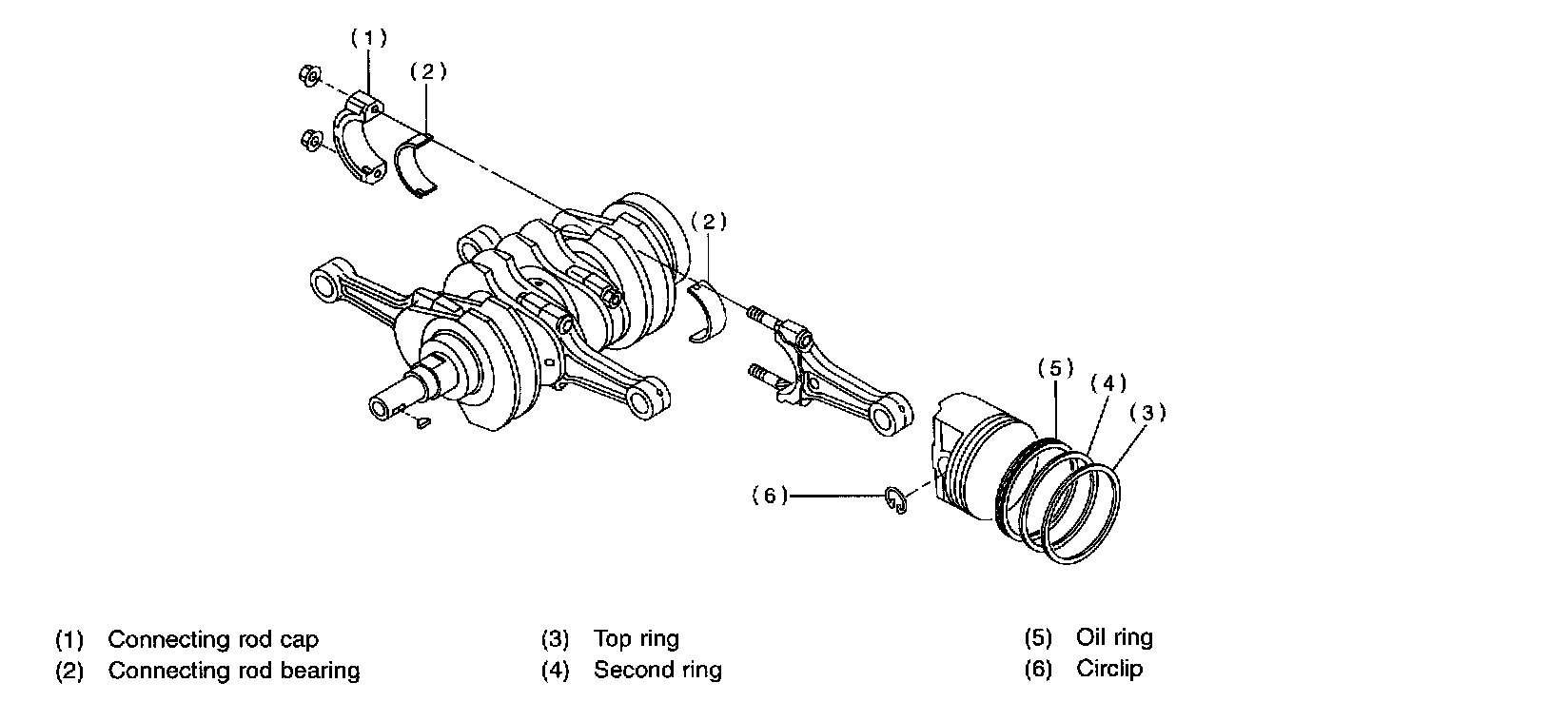 CAUTION: Arrange removed connecting rod, connecting rod cap and bearing in order to prevent confusion.