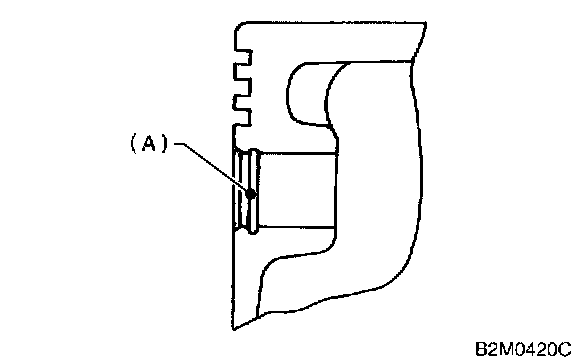 4. Check circlip installation groove on the piston for burr (A). If necessary, remove burr from the groove so that piston pin can lightly move.