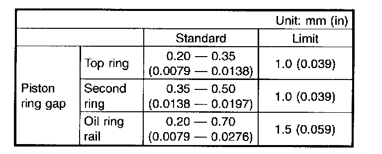 2. Squarely place piston ring and oil ring in cylinder, and measure the piston ring gap with a thickness gauge.