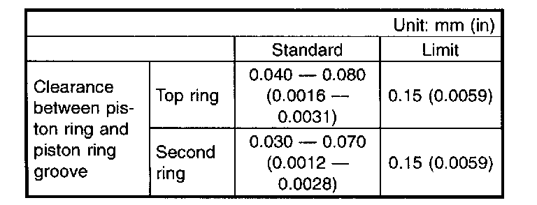 CAUTION: Before measuring the clearance, clean the piston ring groove and piston ring.
