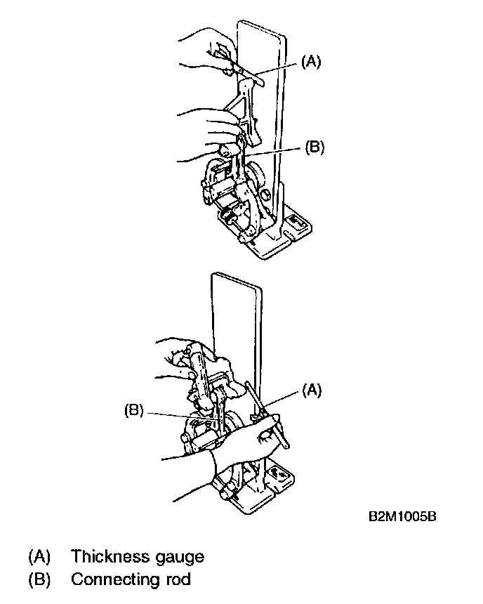 3. Install connecting rod fitted with bearing to crankshaft and measure the side clearance (thrust clearance). Replace connecting rod if the side clearance exceeds the specified limit.