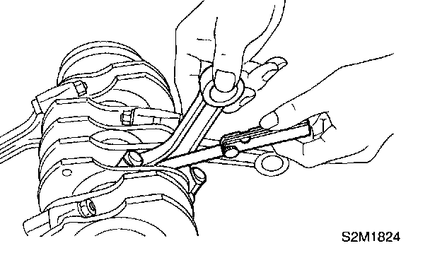 2. Check for bend or twist using a connecting rod aligner. Replace connecting rod if the bend or twist exceeds the limit.