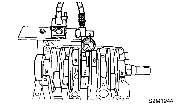 CAUTION: If a suitable V-block is not available, install #1 and #5 crankshaft bearing on cylinder block, position crankshaft on these bearings and measure crankshaft bend using a dial gauge.