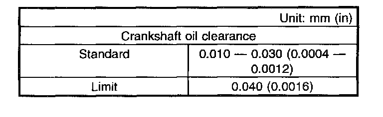 Crankshaft bend limit: 0.035 mm (0.0014 inch)
